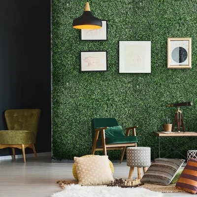 THICK & REALISTIC: Our artificial grass panel fence has 4 layer of leaves with around 400 stitches density, realistic appearance will bring you private space.OCCASIONS & LITTLE MAINTENANCE: This wall of greenery needs little maintenance, and is widely used outdoors and indoors. In gardens or offices, you can use this wall greenery to decor your party, backdrop, and fences, etc.BUILT TO LAST: The PE/PP grass wall makes the topiary hedge durable, which is soft to the touch and is built to resist high and low temperatures, rain and snow, UV damage, and pet damage. This makes it perfect for year-round use.ADVANCED DRAINAGE SYSTEM: The grid pattern backing of the grass rug is designed to allow for easy drainage making a helpful assistant in cleaning.