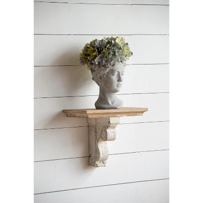 - Combining a classic corbel style with a distressed white finish, this charming wall shelf adds a decorative touch to any room.