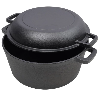 - Discover the ultimate kitchen essential: our Pre – Seasoned 2 – in – 1 Cast Iron Dutch Oven. This versatile piece features a dutch oven pot paired with a skillet – style lid, both meticulously burned with vegetable oil, ensuring a natural, non – stick surface without any synthetic coatings or harmful chemicals.