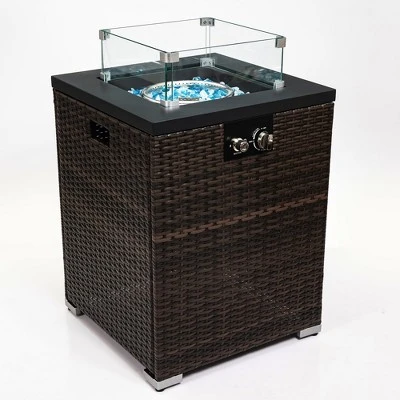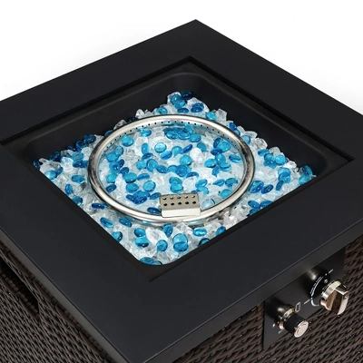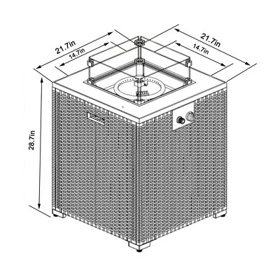 Propane Fire Pit ColumnԕԕԕNoticeԕԕԕ:‘ïNOT Suitable for Natural Gas!Steel TabletopSteel FrameETL ApprovedStainless Steel Burner,With Electronic Pulse IgniterFuel: Propane/ Liquefied Petroleum GasArea Heated:11 Sq.FtBowl Depth: 2.2inchMaterial: Steel + PE Rattan + GlassFlame Adjustable: YesLid: includedHeat output: 40000BTURain Cover: IncludedRocks: Yes(Glass beads)Gas Regulator: IncludedGlass Windshield(Guard): includedLNG: No supportWith Glass Wind Guard1. Glass windshields provide a transparent barrier between the fire and the outside world, allowing you to clearly see the fire without obstructing your view.2. Glass windshields are designed to allow sufficient airflow to the burner while preventing wind gusts or drafts from disrupting the flame.Overall, glass windshields for fire tables provide a safe, transparent, and decorative solution for enjoying a fire pit without being exposed to smoke or embers. They are also easy to maintain and enhance the appearance and ambiance of your outdoor space.Durable PE Wicker and Steel Tabletop LidSteel Tabletop Lid:Larger space to increased usability: A larger tabletop provides more space for placing items. For example, it can accommodate fruits, drinks, and other items without worrying about insufficient space.Durable PE Wicker:1. Made from high-quality PE wicker, this fire table is durable and can withstand the elements, ensuring long-lasting use.2. With its modern design, this outdoor table blends seamlessly into any outdoor setting, whether it’s a balcony, patio or garden.With Rain Cover1. Rain protection: The l rain cover can effectively prevent rainwater from entering the fire table, thereby maintaining the fire table’s dryness and cleanliness, and extending its service life.2. The rain covers can prevent dust and other impurities from entering the fire table, maintaining the cleanliness of the fire table.Clear Glass Rock Mixed with Blue Glass Beads1. Adding Color:clear glass rock with blue glass beads can add color to the firepit, creating a contrast with the orange flame, enhancing visual impact and making the firepit more vibrant.2. Adding Interest: By including clear glass rock with blue glass beads in the firepit, you can add a touch of fun and playfulness to the atmosphere, making a cozy bonfire even more enjoyable.3. Adding Artistic Touch: clear glass rock with blue glass beads can be used to create unique artistic effects, adding an artistic touch to the firepit and making it more unique and attractive.4. High-temperature insulation: The bead glass has good high-temperature resistance and insulation performance, which can effectively prevent the heat loss of the burner and improve the efficiency of the burner.SUS BurnerStainless steel burner with blue glass beads: Features and functions:1. Material: High quality stainless steel, low temperature coefficient of linear expansion, high tensile strength and wear resistance.2. Design: Unique loop design, beautiful appearance, easy to install and replace.3. Heat resistance: The stainless steel burner has good heat resistance, can withstand high temperature up to 600‘ãC, and will not burn or deform at high temperature.4. Easy to clean: The stainless steel surface is easy to clean and care, which can maintain the cleanliness and freshness of the burner at all times.5. Long service life: The stainless steel burner has a long service life, which can reduce the frequency of replacement and save cost.