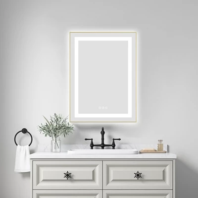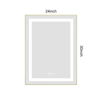 24 X 30 Inch LED Bathroom Mirror With Front And Backlight, Wall Mounted Vanity Mirror With Aluminum Frame, Anti-Fog, Memory,3 Colors,Stepless Dimmable
