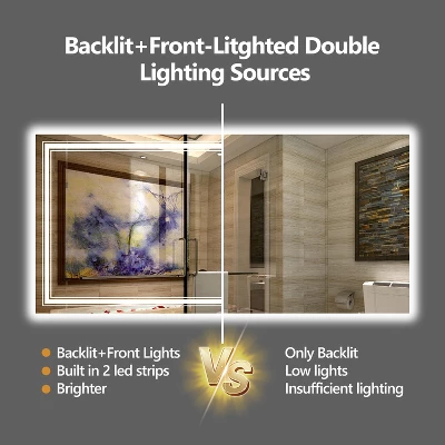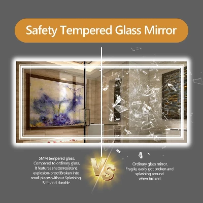 - [Safe & Durable]: UL-certified components with protective casing. LED lifespan: 50,000+ hours (45+ years at 3 hours daily use). Copper-free silver mirror with far lower corrosion rates than standard mirrors. Features 4mm tempered glass for shatterproof, explosion-resistant, and long-lasting safety.