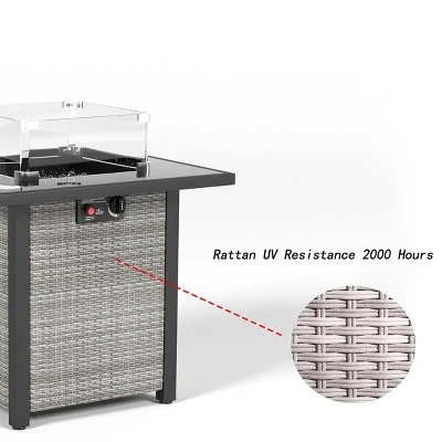 ¡¾Durable construction¡¿: The outdoor firepit is constructed of premium quality solid steel frame and the burner is made of stainless steel, making the patio fire pit built to last and withstand all types of weather conditions. This gas firepit has beautiful tempered glass tabletop which has naturally formed lines, provides a sturdy safe surface for food and drinks and is easy to clean, it can match various of patio furniture and dress up your yard graceful.¡¾Perfect Size, Optimal Heat Output¡¿: Measuring at 27.6 “D x 27.6 “W x 24.8 “H, this propane fire pit table is perfectly sized for various outdoor spaces. Outdoor Fireplace with a remarkable 50,000 BTUs of heat output, fire pit table guarantees cozy warmth during chilly evenings and nights. Enjoy the beauty of the flames while staying comfortably warm in your outdoor haven.¡¾Safe and Stable Design¡¿: Safety is paramount, and Furnivilla ensures fire pit table with thoughtful features. propane fire pit table with a pull ring makes it easy to access the side door for propane tank placement, while a stainless steel ring secures the tank in place, preventing any tilting during use. Enhanced support legs provide stability, ensuring your outdoor fire pit stands firm, making it both safe and easy to relocate.¡¾Effortless Assembly & Premium Support¡¿: Unveil the refinement as you unbox the firepit table for outside, accompanied by clear instructions and all the essential hardware, ensuring a smooth and speedy assembly process. Any queries about your new table fire pit? Our dedicated team is here to provide prompt responses and robust solutions. Your satisfaction with patio firepit table is our top priority.