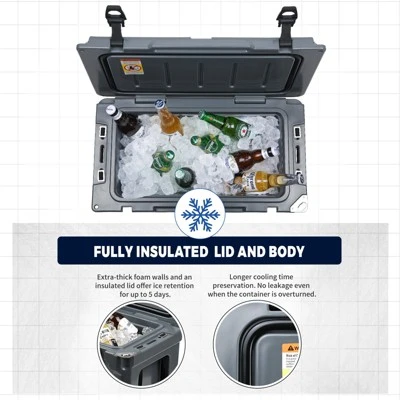 - STURDY ROTOMOLDED CONSTRUCTION: Solid rotary mold ice chests and coolers, with classic surface color and natural luster, use LLDPE material, which is safe & environmental-friendly, sturdy & anti-resistant, inside(food grade) and outside(UV resistance).