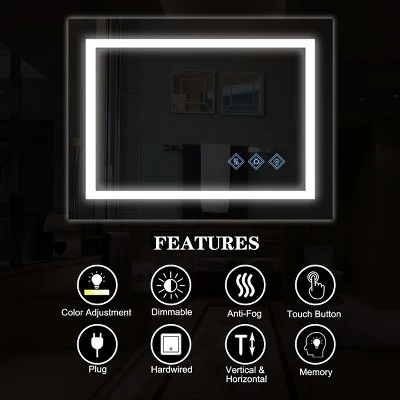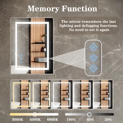 - [ANTI-FOG] : Starting anti-fog function immediately when you turn on the anti-fog button, it need 5-10 minutes to clear this led bathroom mirror completely, safe and energy-saving, so open this function in advance before you use it(May need more time in Winter)