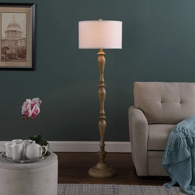 - K/D White Cotton/Linen Drum Shade measures 17inL x 17inW x 10inH. Polyresin Candlestick Column Body Pole measures 11inL x 11inW x 53.5inH.