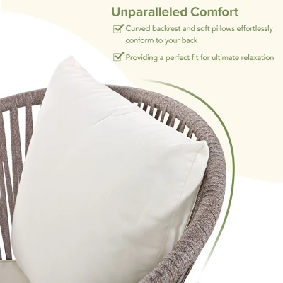 - Perfect for any Place: Featuring classic beige rope weaving, this set adds a touch of contemporary flair to any outdoor space. Perfect for any outdoor setting, this set seamlessly blends style and functionality.