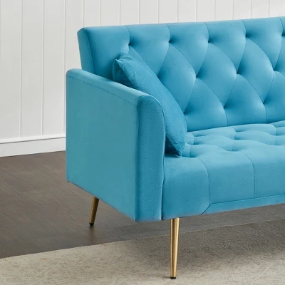Weights DimensionsOverall – sofa71x19x30HSofa Bed71x38x24HSeat Height30Product Weight58.4 LBSGross Weight61.75 LBSCarton size66.22*39.19*6.84 H 61.75lbsProduct TypeSofa BedSeating Capacity2Upholstery MaterialPolyesterUpholstery ColourGreen, pink, beige, blue, grayLeg Material / ColorGoldenSeat Fill MaterialPolyesterBack Fill MaterialPolyesterFrame MaterialSolid + Manufactured WoodSeat ConstructionSolid wood +serpentine springPillows IncludedyesRemovable Cushion CoverNoWeight Capacity600LBProduct CareWipe clean with a dry cloth