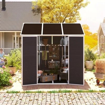- OUTDOOR STORAGE SHED: Features a slim footprint design for lawn equipment and gardening tools while fitting nicely along a house or garage when yard space is limited.