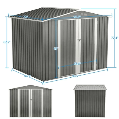 - ¡¾Large Space Storage¡¿ 8 x 6 feet (99.6 x 70.4 x 72.6 inches) metal garden storage room Durable galvanized steel reinforced construction makes this durable metal outdoor storage shed rustproof and UV-resistant.Large for shovels, lawn mowers, ladders and other garden tools, easy to install can help you to avoid clutter in your yard, basement or garage. Keep your yard looking clean and tidy.