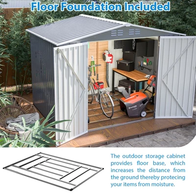 - ¡¾Multi-functional Tool Shed¡¿Our 8¡¯x6¡¯ backyard shed can be used not only as a garden tool shed, but also as a pet house, providing a safer and warmer room for your pet; it can also be used as a garbage collection room to keep the backyard tidy. Galvanized steel garden storage outdoor adds a crisp clean appearance that blends perfectly with any exterior design or landscaping.