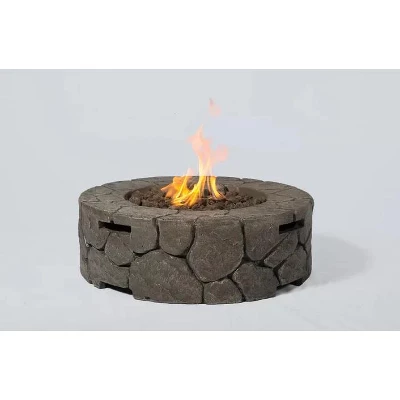 - Sit back, relax, and enjoy the outdoors year-round with this propane-powered fire pit. Its fibre-reinforced concrete construction mimics the look of stone, blending rustic and modern design.