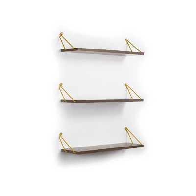 Altai Floating Wall Decor Wall Mounted Rustic Decorative Hanging Metal Bracket Triple Shelfs for Books, Walnut/Yellow