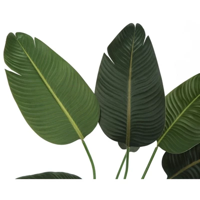 Add some greenery to your space with this 44″ tall faux Bird of Paradise tree that is firmly set in a 5″ black potThis decorative indoor floor plant features 8 adjustable green leaves that can be arranged to your likingThis easy-care artificial plant is made from the highest quality materials and requires no maintenance or watering, for a sustainable, environmentally friendly decorative accent that will last a lifetimeNo assembly required; product dimensions: 32 in. L x 27 in. W x 44 in. H