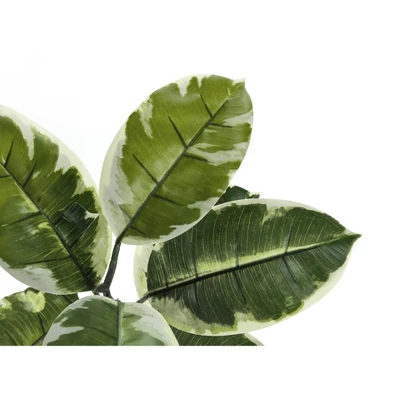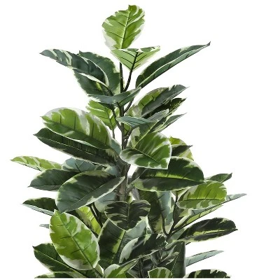 Add a lively burst of greenery to any floor of your home or office with this 52″ tall artificial indoor rubber tree in a 5″ black pot.72 real touch, adjustable, variegated green leaves create a lifelike appearance.This easy-care faux potted plant is made from the highest quality materials and requires no maintenance or watering, for a sustainable, environmentally friendly, decorative accent that will last a lifetime.No assembly required; product dimensions: 27 in. L x 25 in. W x 52 in. H
