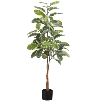 - Add a lively burst of greenery to any floor of your home or office with this 52in tall artificial indoor rubber tree in a 5in black pot.