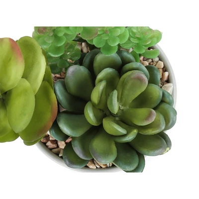 Add some greenery to your space with this set of 2, 7″ tall artificial succulent plantsEach faux indoor plant is potted up in a white ceramic pot which is dressed with pebble rocks for a natural lookThese easy-care table plants are made from the highest quality materials and require no maintenance or watering, for a sustainable, environmentally friendly decorative accents that will last a lifetimeNo assembly required; product dimensions: 5.5 in. L x 4.5 in. W x 7 in. H