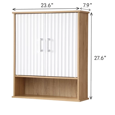 Sleek Design Meets Functionality£ºTransform your bathroom into a modern oasis with our wall-mounted cabinet. Featuring a stunning white and natural wood finish, complemented by elegant wave-patterned doors, this cabinet adds a touch of sophistication while maximizing storage space.Smart Storage Solutions£ºDesigned with dual doors and a bottom shelf, this cabinet offers ample space to organize all your bathroom essentials. The adjustable interior shelf allows you to customize the storage to fit your needs, keeping your bathroom clutter-free and organized.Easy Installation, Lasting Quality£ºCrafted with precision and durability in mind, our cabinet is not only easy to install but also built to withstand the humid bathroom environment. Its high-quality materials ensure long-lasting performance, making it a reliable addition to your home.Perfect for Any Bathroom Style£ºWhether your bathroom is modern, rustic, or minimalist, this cabinet’s versatile design seamlessly blends in. The combination of white and wood tones creates a timeless look that enhances any decor.Upgrade Your Bathroom Experience£ºSay goodbye to messy countertops and hello to a tidy, stylish bathroom. This wall-mounted cabinet is the perfect solution for keeping your space neat and functional, while adding a chic aesthetic to your daily routine.