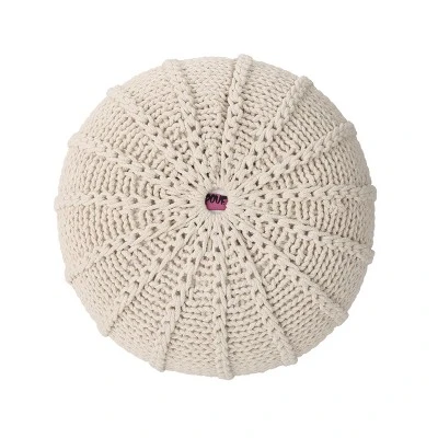 Bordeaux Knitted Cotton Round Pouf, Beige
