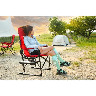 EXTRA POINTS FOR DETAILSBuilt-in cup holder, prevent your drink from spilling out. Your mobile phone, snacks, and sunglasses can be placed on the folding side table. A grip behind the back of the camping chair, convenient to carry it outdoorsBuilt to LastThe sturdy steel frame construction affords up to 250 LBS and the chair weight of 17.16 LBS . The double-seam 600x300D Oxford Cloth & 200g mesh has great strength, durability, and breathability. This folding camp chair is great for adults Heavy Duty.Easy-PeasySetting this director chair up is effortless and fast. You only have to take it out from the Handle straps attached carry bag, pull the frame apart, and click the frame to lock¡ Ta-Da! Here you go – now you can enjoy this sturdy & comfy director chair and easily transport to camp, lawnA Camping Director ChairUse it as a camping chair, folding chair, lawn chair, travel chair, beach chair and more. Suitable for outdoor adventures, tailgating, fishing, backpacking, beach, picnic, sport games, car travelling, or just put it in the backyardCamping Directors Chair, Heavy Duty,Oversized Portable Folding Chair with Side Table-RedColorRedProduct Dimensions24.41″D x 27.56″W x 43.31″HRecommended Uses For ProductAdults, camping,Outdoor, Garden, PatioFrame MaterialSteelUnit Count1 pcMaximum Weight Recommendation250PoundsCarton size1pc: 24.41” W x 5.71” D x 33.86” HItem Weight17.16 PoundsCountry of OriginChina