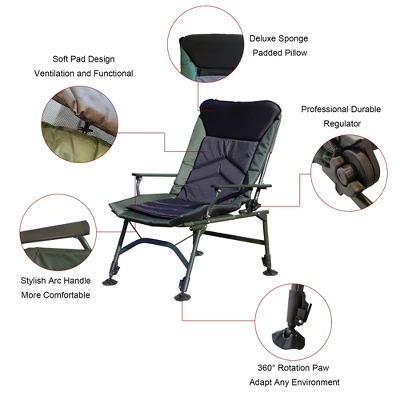 - 4. Adjustable Foot Cup: The legs can adjust the height balance and the foot cup of the chair can be adjusted 360¡ã, enabling it to adapt to different outdoor environments.