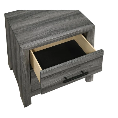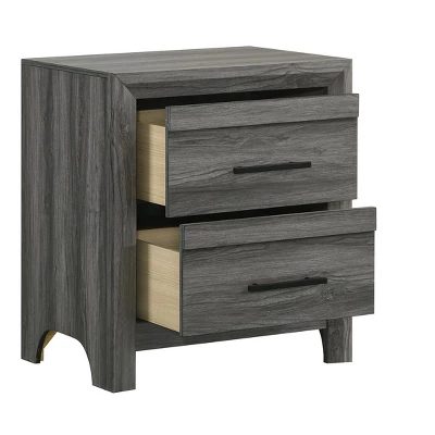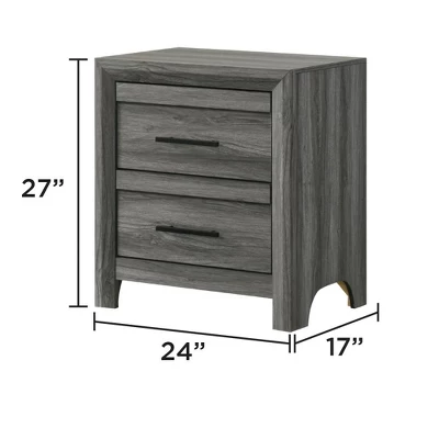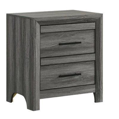 Denver Modern Style 2-Drawer Night stand Made with Wood in GrayCrafted with meticulous attention to detail, this modern nightstand serves as the perfect bedside companion with its two convenient drawers. Designed to seamlessly blend with your existing bedroom decor, it exudes a contemporary elegance that enhances the overall aesthetic. Its sleek silhouette and clean edges add a touch of chic sophistication to your sleeping space, elevating its style quotient. The two spacious drawers offer essential storage for your nighttime necessities, ensuring easy access to items like books, glasses, or personal belongings. Whether used individually or paired with other pieces, this nightstand not only fulfills its practical function but also contributes to the overall ambiance of your bedroom. Embrace modern sophistication and organizational efficiency with this sleek and stylish addition to your bedroom furniture ensemble.