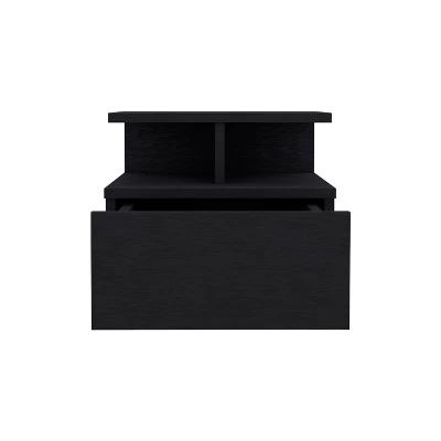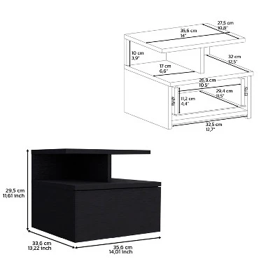 Modern Floating Nightstand ¨C Minimalist & Functional Design.Maximize your space in style!This floating nightstand blends elegance and functionality in a compact design. Its cement-look finish makes it perfect for modern and minimalist interiors. It features a spacious drawer and open compartments to keep your books, devices, or essentials well-organized.Wall-mounted design gives your bedroom a clean, sophisticated look¡ªideal for small or large spaces!Dimensions: 35.6 x 33.6 x 29.5 cm.Stay organized. Sleep in style.