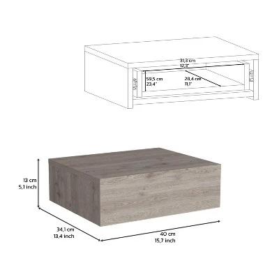 Floating Nightstand 5″H, Modern Wall-Mounted Bedside Shelf With Drawer, Light Gray