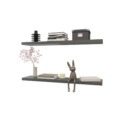 Romance CopyIdeal for the office, living room, or bedroom, this versatile piece seamlessly adapts to various spaces in the home while adding a touch of elegance and modernity. Achieve a sleek and modern aesthetic with the matte grey finish, which offers a smooth, understated look that complements any contemporary space and comes with all necessary accessories for quick and secure assembly on any wall.Product DetailsSet includesOne (1) floating shelfDimensions1.5 inches high x 47.3 inches wide x 9.8 inches deepMaterialsParticle BoardFinish ColorGrey
