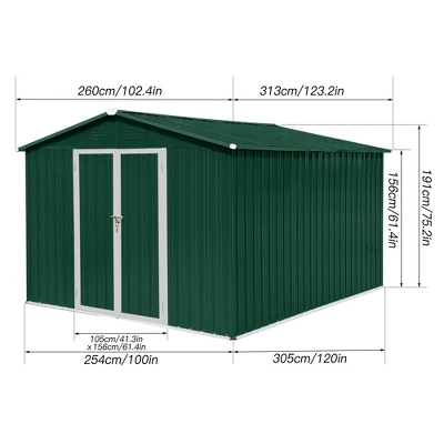 Metal Garden Sheds 8ft¡Á10ft Outdoor Storage Sheds Green + White -House Furnish World GUEST 9d80a910 e9f0 4665 b25d 6ae2b49f76e4