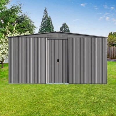 The detailed instructions make it easy to complete the installation step by step.Unlike typical sheds with plastic vents, this shed comes with two integrated punched vents which will not deteriorate against sunlight.This storage shed has two functions: tools are stored in the shed and firewood is stored on the side.Apex roof sheds have the apex gable ends and are the most popular and economical type of metal shed design.
