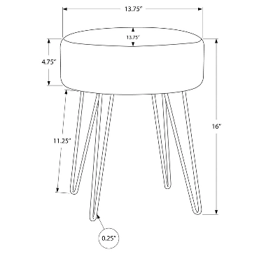 Round ottoman with a padded seat for comfort and upholstered in a blue fabric with a plush textureSlender metal legs in a trendy hairpin shape with a gold finish for a touch of modern glamDesigned for versatile use as an extra seat, a foot stool, or an impromptu side table in a living room or bedroomMinor assembly required: Illustrated instructions and all hardware are provided for convenience (additional tools may be needed)Product dimensions: 13.75 inches L x 13.75 inches W x 16 inches H