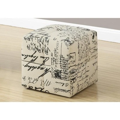 Set of 2 kids’ ottomans in a fun cube shape and upholstered in a beige vintage French fabricBiscuit tufted and comfortably padded on all sidesSmall poufs look like contemporary furniture for grownups but are sized specifically for childrenNo assembly requiredProduct dimensions: 12 inches L x 12 inches W x 12 inches H each