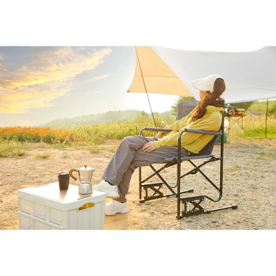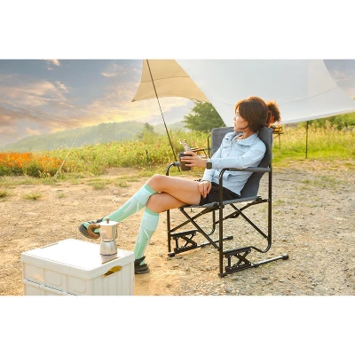 OUTDOOR LIVINGGreat for relaxing by the campfire or sideline,Relax in comfort on your adventure with smooth rocking on any surface, anywhere.CUTTING-EDGE DESIGNShock absorbers with patented Spring-Action Rocking Technology let you gently rock on flat, hard or soft terrain. A sturdy steel frame holds up to 250 lbs, while a durable mesh backing brings through airflow.SIMPLE SET UPRecharge in no time with Eazy-Fold Technology. Simply grab the seat frame, push out, then down and you’re good to go. Packing up is just as quick ¡ª place your foot on the leg’s base and pull the closure handle up.TECH SPECS250 lbs Weight Capacity; Open Dimensions: 24.02″ Depth x 23.23″ Width x 37.01″ Height (Seat Height: 19.29″)Outdoor Freestyle Rocker Camping Chair Portable Folding Rocking Chair with Solid-GreyColorGreyProduct Dimensions24.02″D x 23.23″W x 37.01″HRecommended Uses For ProductAdults, camping,Outdoor, Garden, PatioFrame MaterialSteelUnit Count1 pcMaximum Weight Recommendation250PoundsCarton size1pc: 36.02” W x 4.92” D x 25.20” HItem Weight17.64 PoundsCountry of OriginChina