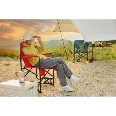 OUTDOOR LIVINGGreat for relaxing by the campfire or sideline,Relax in comfort on your adventure with smooth rocking on any surface, anywhere.CUTTING-EDGE DESIGNShock absorbers with patented Spring-Action Rocking Technology let you gently rock on flat, hard or soft terrain. A sturdy steel frame holds up to 250 lbs, while a durable mesh backing brings through airflow.SIMPLE SET UPRecharge in no time with Eazy-Fold Technology. Simply grab the seat frame, push out, then down and you’re good to go. Packing up is just as quick ¡ª place your foot on the leg’s base and pull the closure handle up.TECH SPECS250 lbs Weight Capacity; Open Dimensions: 24.02″ Depth x 23.23″ Width x 37.01″ Height (Seat Height: 19.29″)Outdoor Freestyle Rocker Camping Chair Portable Folding Rocking Chair with Solid-RedColorRedProduct Dimensions24.02″D x 23.23″W x 37.01″HRecommended Uses For ProductAdults, camping,Outdoor, Garden, PatioFrame MaterialSteelUnit Count1 pcMaximum Weight Recommendation250PoundsCarton size1pc: 36.02” W x 4.92” D x 25.20” HItem Weight17.64 PoundsCountry of OriginChina
