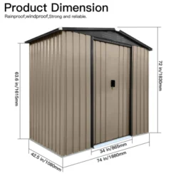 Outdoor Storage Sheds 6FTx4FT Apex Roof Brown With Sliding Doors