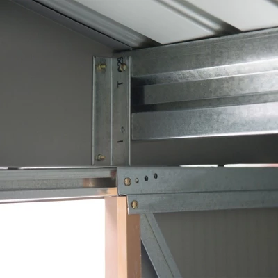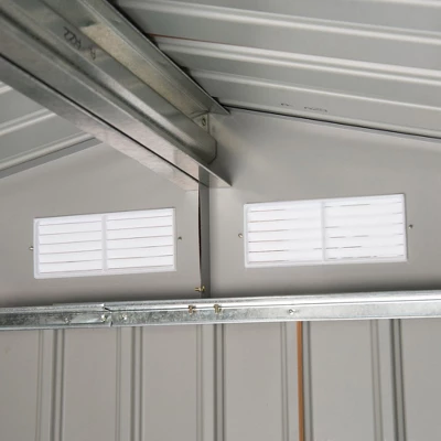 - Good Ventilation: Our metal outdoor storage sheds feature four ventilation slots on the front and back, increasing light and airflow. This prevents odor and keeps your equipment and tools dry.