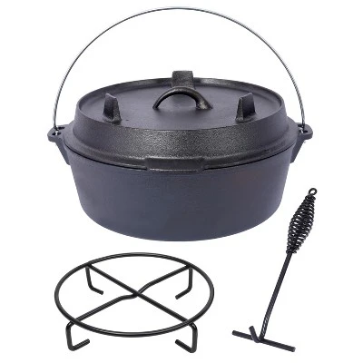 Crafted to endure the harshest of outdoor conditions, this is a camping essential. Whether you’re simmering a hearty stew over an open campfire, baking a delicious cobbler in hot coals, or slow-cooking a savory meal during your wilderness escapades, this Dutch oven’s excellent heat retention and even distribution ensure culinary success every time. It’s the ultimate companion for creating unforgettable camping feasts.The Dutch oven’s ingeniously designed lid is a true marvel of functionality. Fitted with sturdy legs, it seamlessly transforms into a skillet or griddle, unlocking a whole new realm of culinary possibilities during your camping trips. Whether you’re craving crispy bacon for breakfast, searing succulent steaks for dinner, or flipping fluffy pancakes under the open sky, this dual – purpose lid has you covered.Designed with convenience at its core, this cast iron Dutch oven features a robust built-in carrying handle, enabling you to effortlessly tote it from your vehicle to the campsite. Moreover, the oven can be securely suspended from a tripod stand on level surfaces, providing you with unparalleled flexibility in your cooking setup. With its seamless combination of portability and adaptability, this Dutch oven is the ultimate companion for any outdoor cooking enthusiast.Your well-being and convenience are our top priorities. That’s why we include a specialized dutch oven lid lifter, engineered to ensure a secure and hassle – free experience when handling hot lids. This essential accessory minimizes the risk of burns and accidental spills, allowing you to confidently maneuver the lid while cooking. It’s a thoughtful addition that enhances your outdoor cooking adventure, giving you peace of mind with every use.