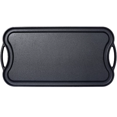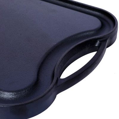 - This meticulously pre-seasoned cast-iron cookware features a dual-sided, reversible design, offering a grilling surface on one side and a griddle on the other. The ergonomically designed handles provide a comfortable and secure grip, ensuring ease of handling during cooking. Engineered to withstand high temperatures, this versatile piece is oven-safe up to 500 degrees Fahrenheit, allowing for seamless transitions from stovetop to oven.