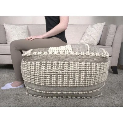 Gives your home a cozy spot of texture and style.Handcrafted with a tufted design in brown and beige.Fully assembled.Spot clean only.Made of 75% wool and 25% cotton.Filled with polystyrene beads.Dimensions: 26inx26inx16.5in