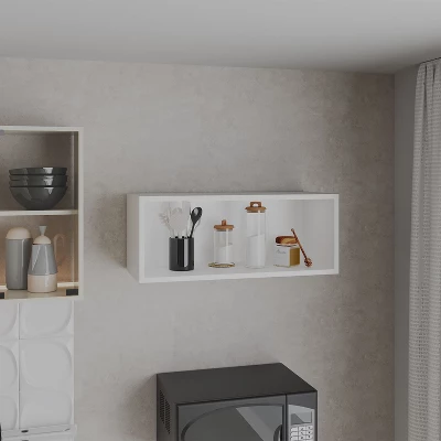 Spacious shelf provides ample storage for kitchen essentials.Compact design fits perfectly in small kitchens or spaces. Wall-mounted to save floor space and offer easy access.Durable engineered wood ensures long-lasting use and stability.Durable engineered wood construction ensures longevity.Ready to assemble, full assembly required; all tools and instructions included.Clean, modern look enhances any kitchen decor style.FSC Certified and TSCA Compliant: Crafted from sustainably sourced materials.CARB phase II compliant and TSCA Title VI compliant for safe and eco-friendly materials.