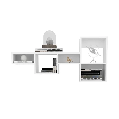 Dynamic Design: Seven tiers of varying heights create an eye-catching display for your belongings.Generous Dimensions: Standing at 22″ high, 47.3″ wide, and 10″ deep, it offers ample storage without overwhelming your space.Sturdy Build: With a weight capacity of 100 lbs, this wall shelf can handle books, decor, and everyday essentials.Multi-Room Functionality: Perfect for home offices, living rooms, bedrooms, or even kitchens.Effortless Assembly: Set it up quickly and enjoy organized style!