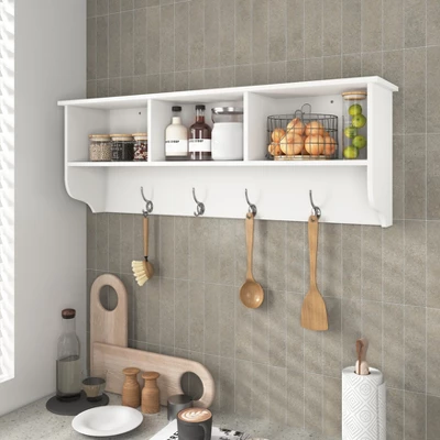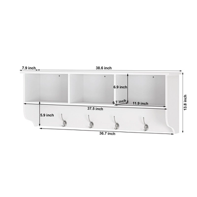 - Bring it home and welcome your friends with a tidy and clean entryway. Material: MDF panel and steel hooks Dimension: 38.58″x 7.87″x 13.78″(L x W x H inch).