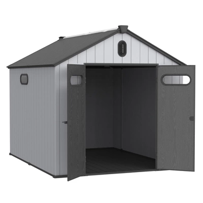 ¡¾ High quality materials ¡¿The use of high-quality plastic, can effectively rain, UV protection, durable, protect your tools.¡¾ Mass storage ¡¿This outdoor storage offers plenty of space to hold a wide variety of items, from garden tools and equipment to outdoor toys and sports gear, making it easy to organize and organize your outdoor area.¡¾ Safe and lockable ¡¿Equipped with lockable doors and featuring robust mechanisms, this cabin provides a secure storage environment that discourages unauthorized entry and is safe and assured.¡¾ Simple assembly ¡¿Designed to be easy to install, this storage shed includes clear instructions and minimal components, allowing you to assemble quickly and without complexity, saving time and effort.¡¾ Multi-functional use ¡¿This outdoor storage can not only support tool storage, but also be used as a work area, and the multi-functional design brings convenience to your life.